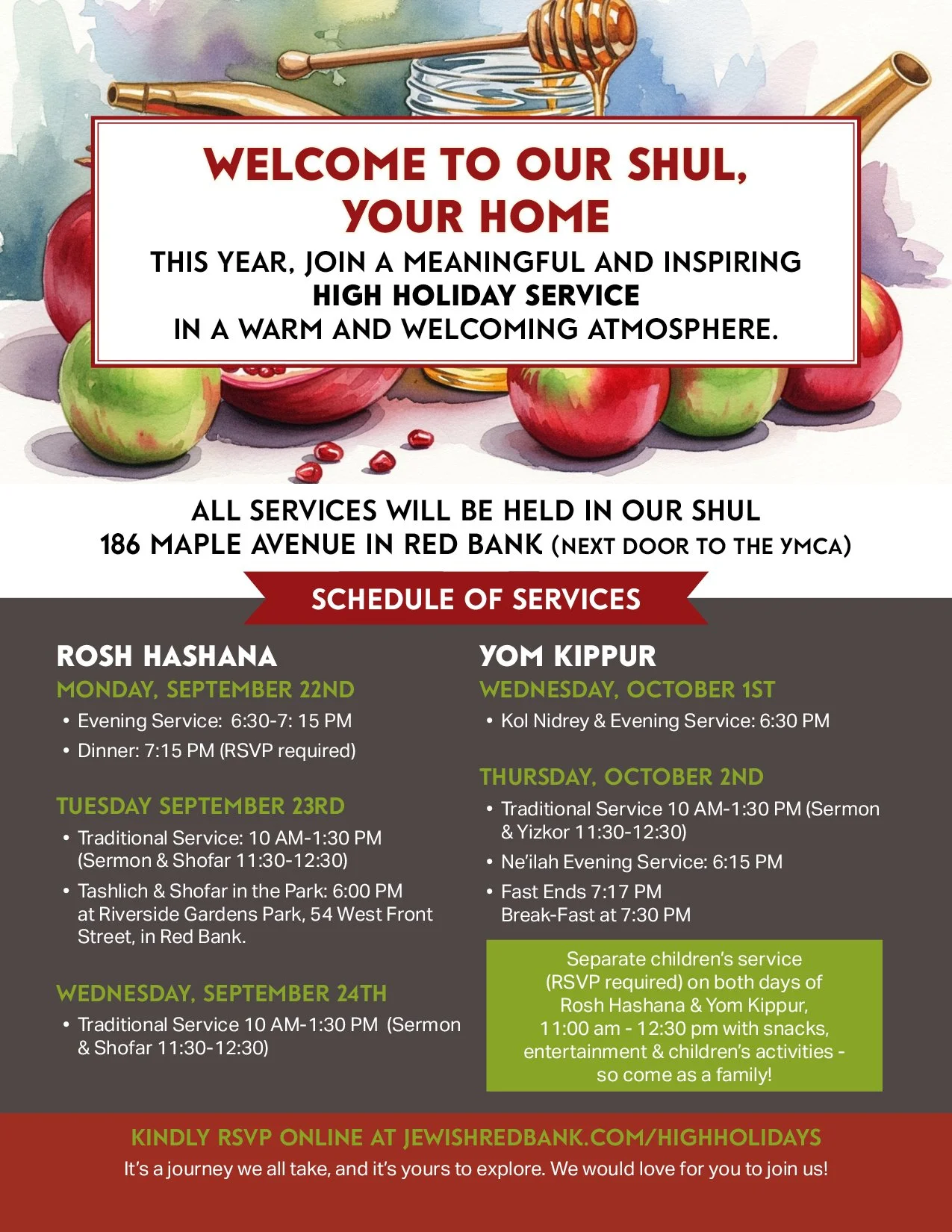 Get to meet the Rabbi or Rebbetzin - email or call to set up coffee!